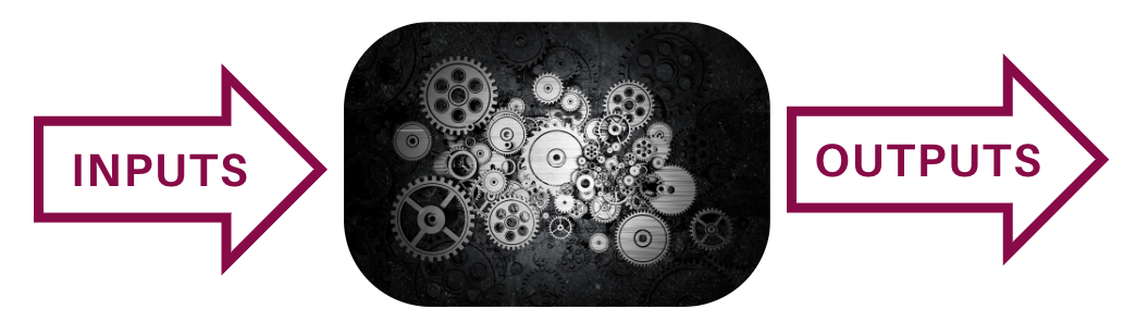 From a practical standpoint functions, and methods for that matter, are blocks of code that take some input (e.g. an external dataset in CSV format) and produce some outputs (e.g. a new Pandas DataFrame), refer to the following figure.